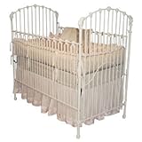 Gorgeous wrought iron crib by Corsican, makers of fine cast iron cribs and furniture for over 40 years. The craftsmanship on this crib is truly old world style. Classic iron crib with castings on the sides and rails. One side can be lowered, the other is stationary. Mattress height is adjustable.